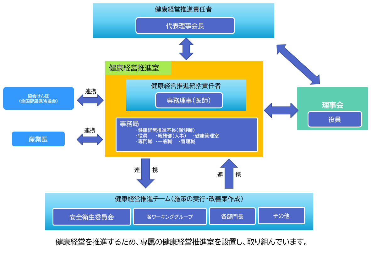 各セクションに健康経営の課題の企画や実践など権限を付与することで健康経営が