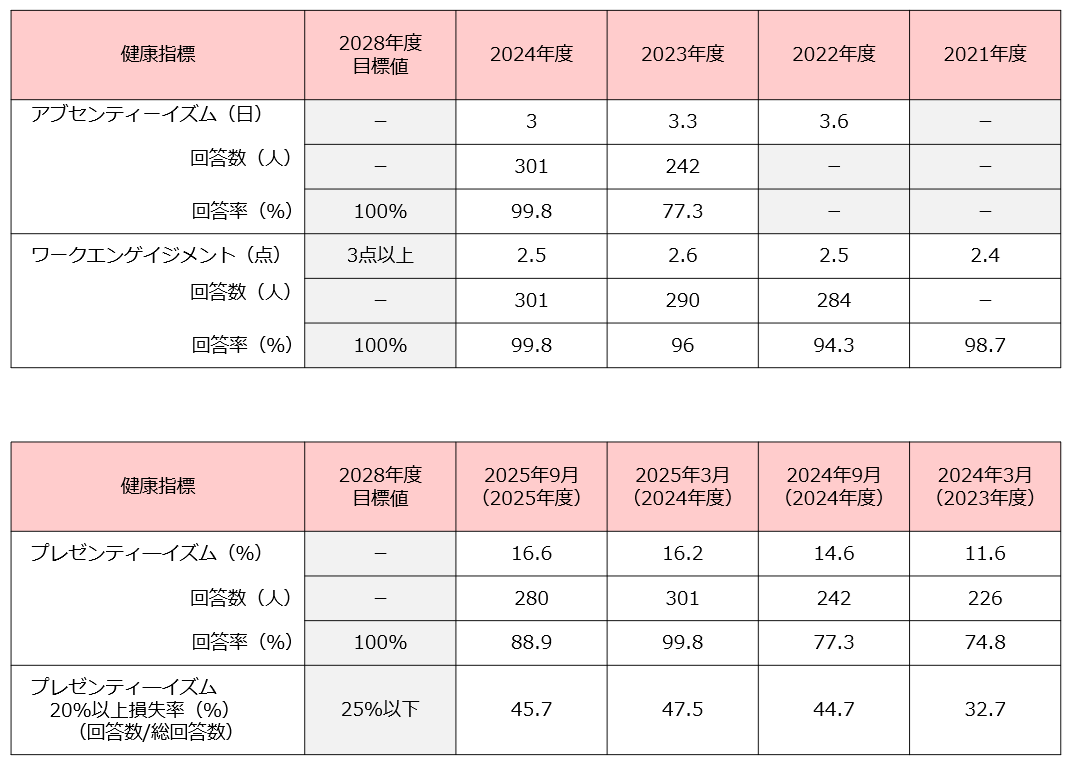 2025年度、プレゼンティーイズムの損失割合が高いセクションに対し要因の検証を始めた。