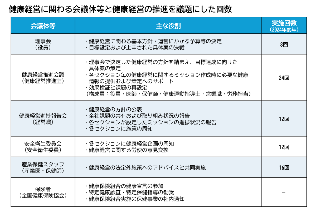 各セクションに健康経営の課題の企画や実践など権限を付与することで健康経営が